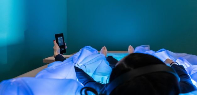 Sink into a membrane-suspended, temperature-controlled bed that simulates weightlessness—no water, no showers, fully clothed. Reduced sensory input and uniform pressure offloading are designed to promote parasympathetic relaxation, ease muscular guarding, and support sleep quality. Sessions are streamlined: in-and-out in ~40 minutes. Optionally, we disperse pharmaceutical-grade salt micro-aerosol to gently hydrate airways and skin, a practice often called halotherapy. Many users pursue dry float for everyday stress relief, perceived pain reduction, and recovery between workouts without the hassle of traditional float tanks.
